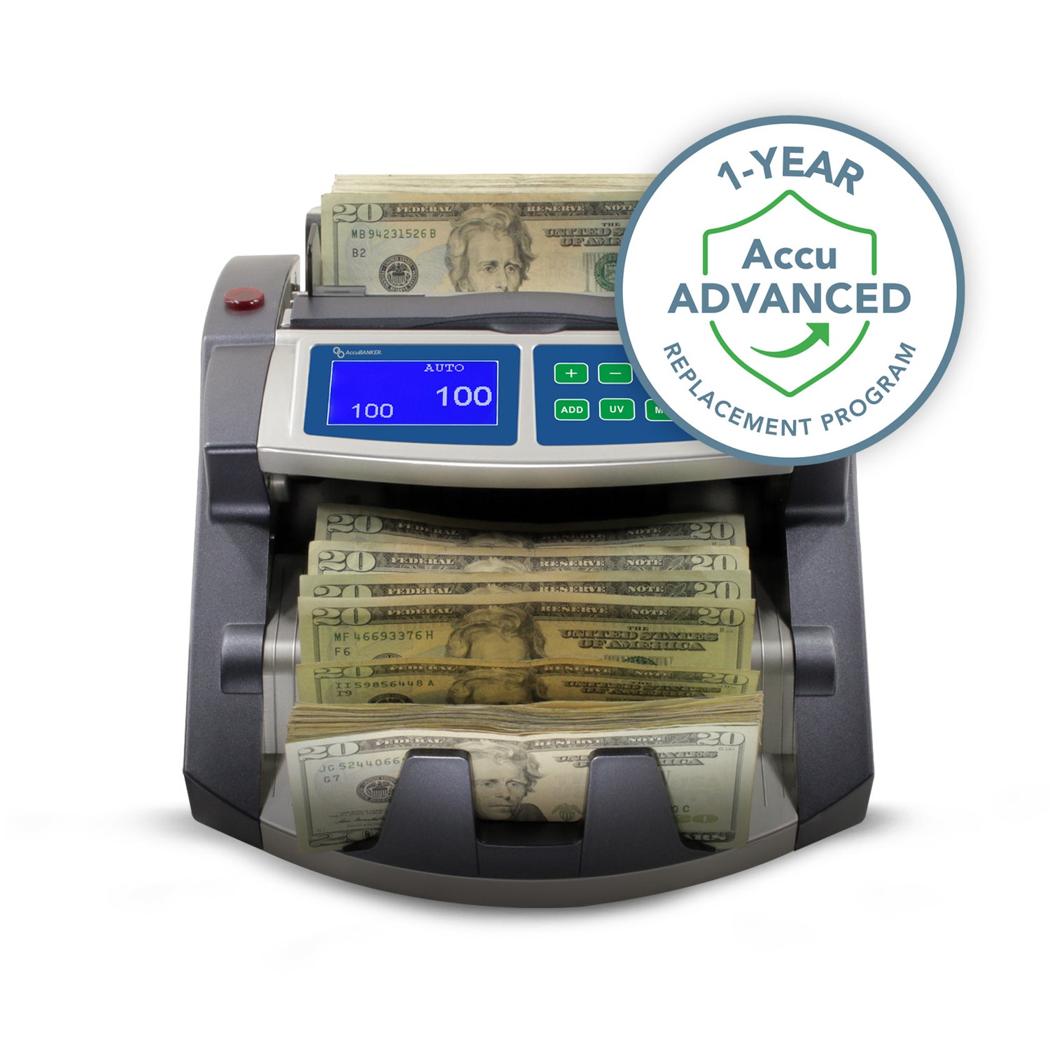 The AccuADVANCED 1-Year Replacement Program is available for all new AccuBANKER counterfeit detectors, counterfeit validators, and money counters, including coin counters, bill counters, value counters, and money scales.