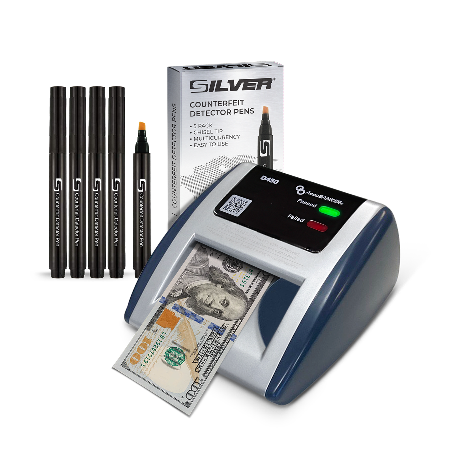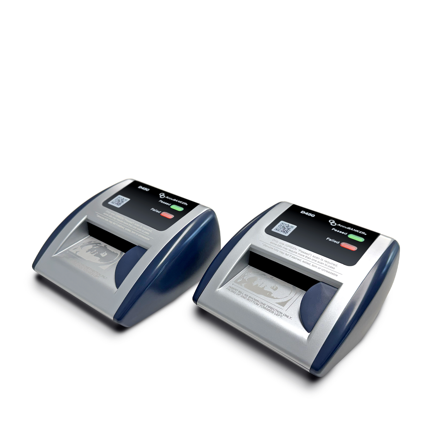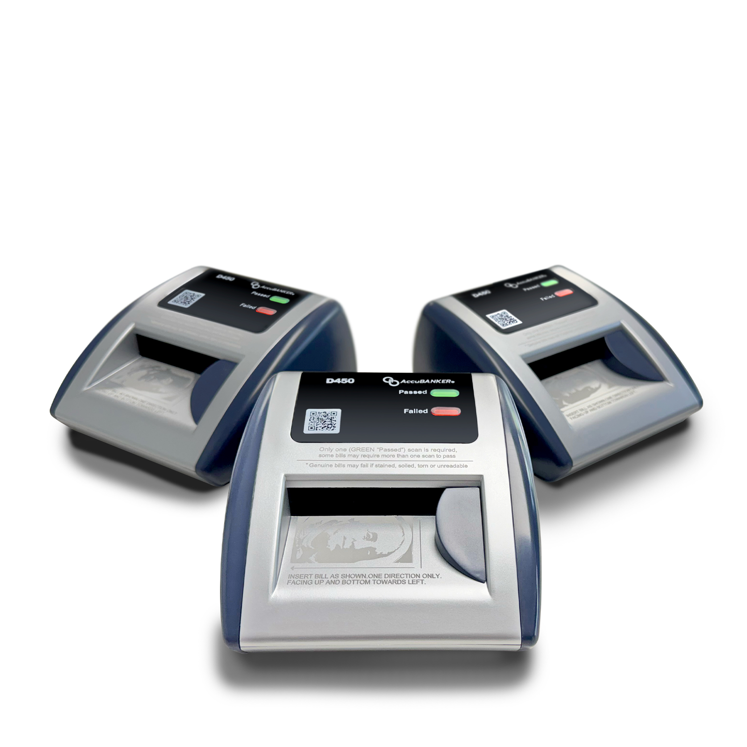The D450 Counterfeit Bill Scanner's self-feeding detection system eliminates the need to visually inspect suspicious notes. Great for bars, nightclubs, restaurants, movie theaters, gas stations, retail stores, and all other businesses where cash transactions take place. This automatic counterfeit detector checks for authenticity using five counterfeit detection systems in less than 1 second per bill. Audible and visual warnings notify the user if the bill passed or failed the test. Its compact and lightweight design makes it easy to fit anywhere. Use the D450 to protect your business against counterfeits that negatively affect your bottom line.